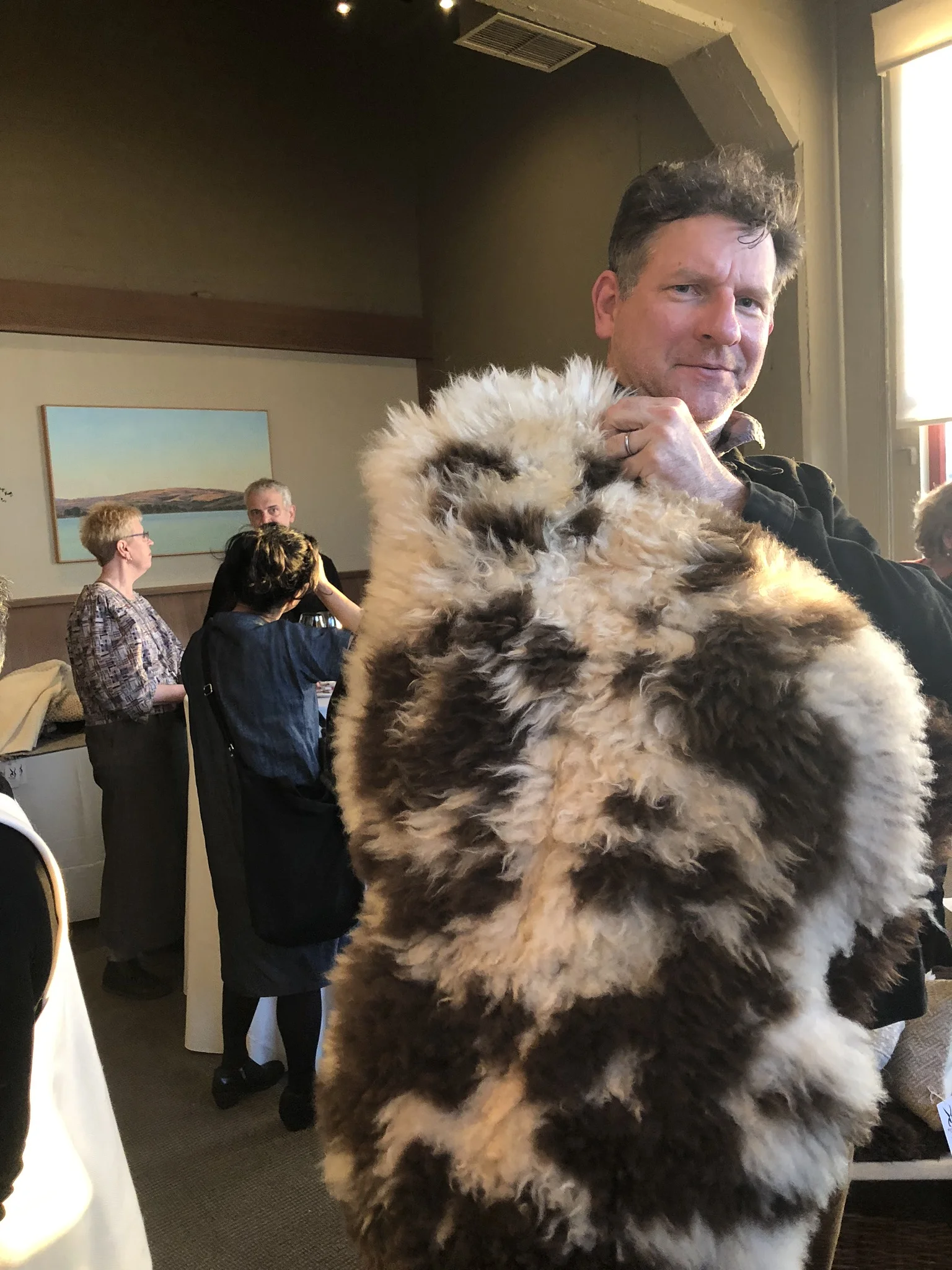 The resulting collection features pillows made from spotted Jacob shearlings; Eco prints; & tweedy woolens with horn buttons. Gorgeous hand knit throws featuring open work; broom stick handle large gauge stitches; and woven placemats in the most beautiful mix of patterns, meant to give your table rich texture for every meal.